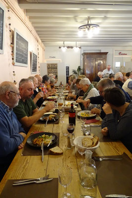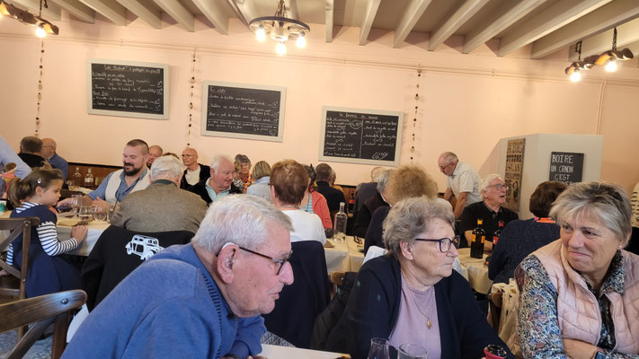 Le déjeuner fut servi dans un petit garage au milieu de véhicules anciens (mobylettes- tracteurs – voitures etc…)
